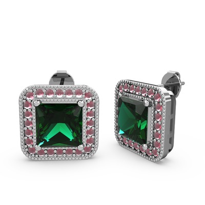 Yeşil kuvars ve kök yakut 18 ayar beyaz altın küpe