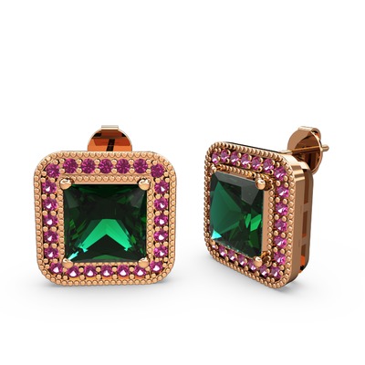 Yeşil kuvars ve rodolit garnet 14 ayar rose altın küpe