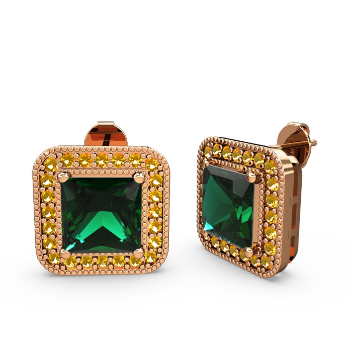 Yeşil kuvars ve sitrin 8 ayar rose altın küpe