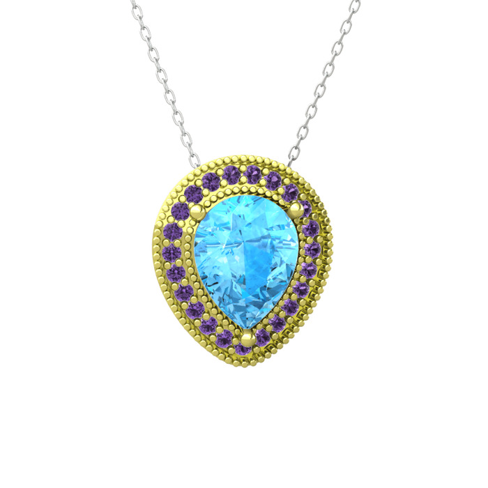 Akuamarin ve ametist 14 ayar altın kolye (40 cm beyaz altın rolo zincir)