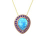 Akuamarin ve ametist 8 ayar rose altın kolye (40 cm altın rolo zincir)