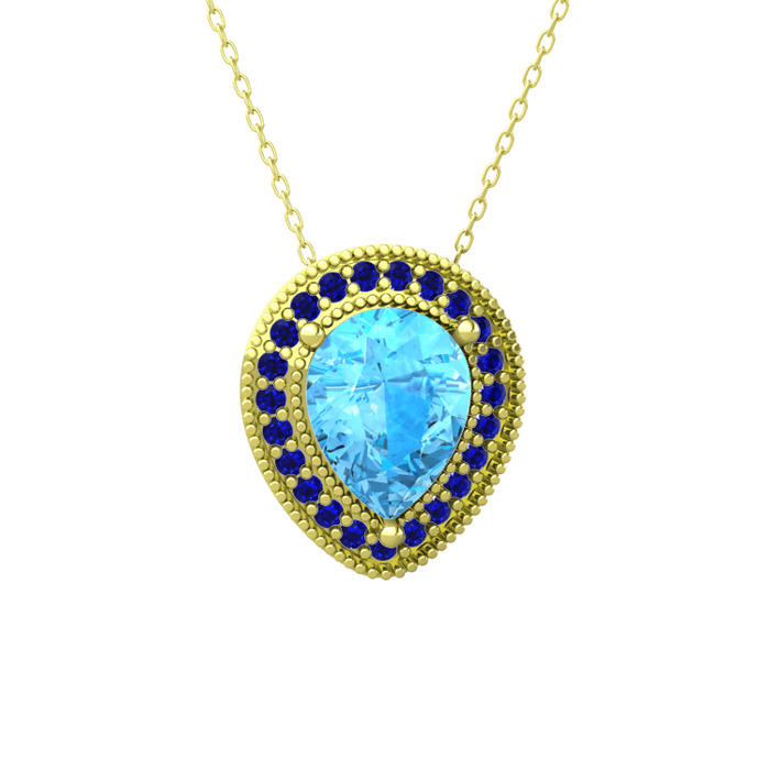 Akuamarin ve lab safir 14 ayar altın kolye (40 cm altın rolo zincir)