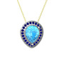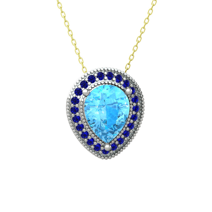 Akuamarin ve lab safir 18 ayar beyaz altın kolye (40 cm altın rolo zincir)