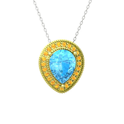 Akuamarin ve sitrin 8 ayar altın kolye (40 cm beyaz altın rolo zincir)