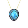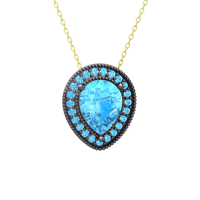 Akuamarin 925 ayar siyah rodyum kaplama gümüş kolye (40 cm altın rolo zincir)