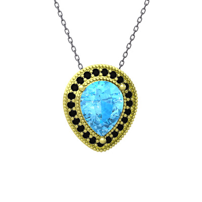Akuamarin ve siyah zirkon 18 ayar altın kolye (40 cm gümüş rolo zincir)