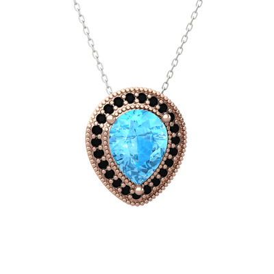 Akuamarin ve siyah zirkon 8 ayar rose altın kolye (40 cm beyaz altın rolo zincir)