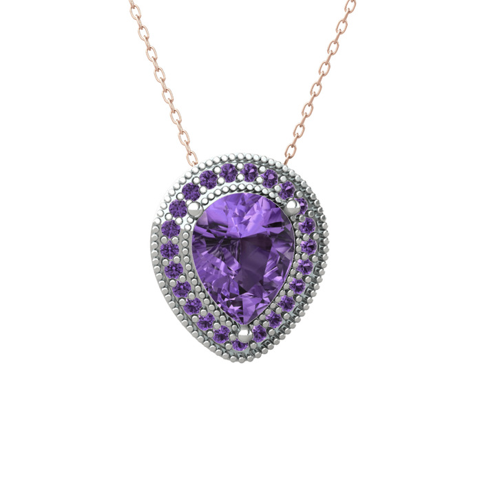 Ametist 14 ayar beyaz altın kolye (40 cm gümüş rolo zincir)