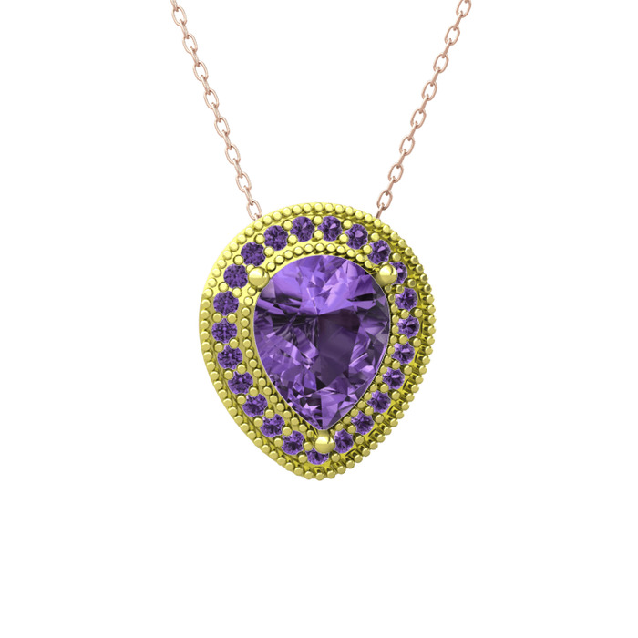 Ametist 18 ayar altın kolye (40 cm rose altın rolo zincir)