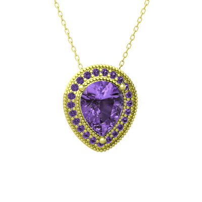 Ametist 8 ayar altın kolye (40 cm gümüş rolo zincir)