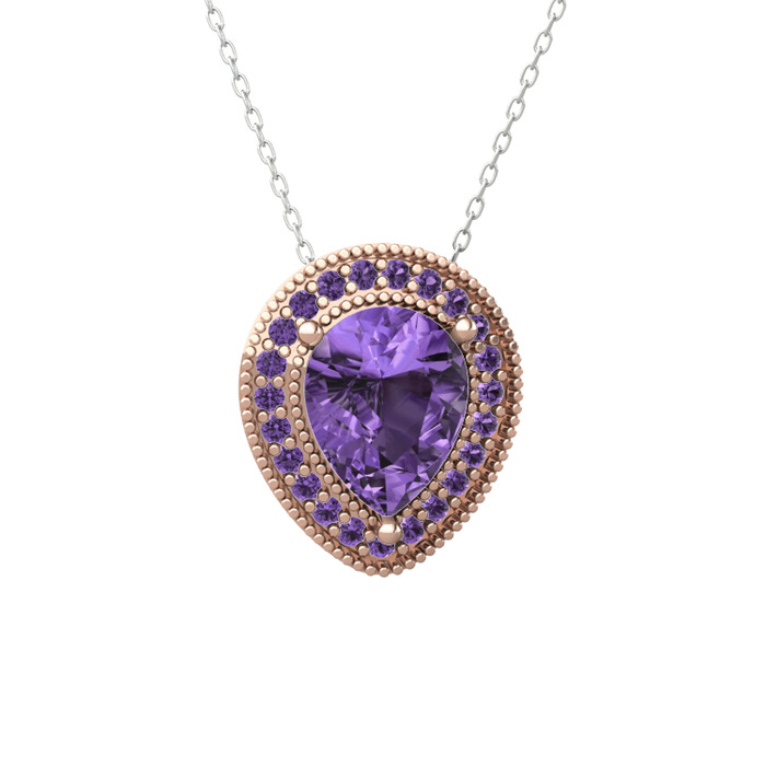 Ametist 8 ayar rose altın kolye (40 cm beyaz altın rolo zincir)