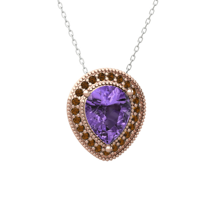 Ametist ve dumanlı kuvars 18 ayar rose altın kolye (40 cm beyaz altın rolo zincir)