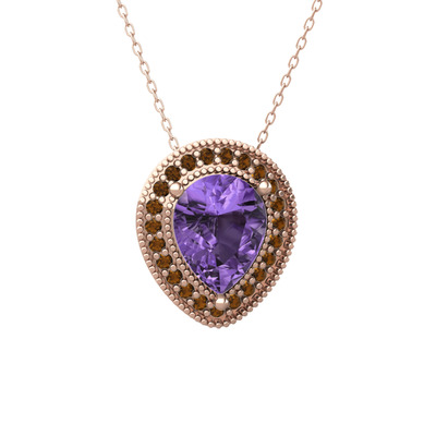 Ametist ve dumanlı kuvars 925 ayar rose altın kaplama gümüş kolye (40 cm rose altın rolo zincir)