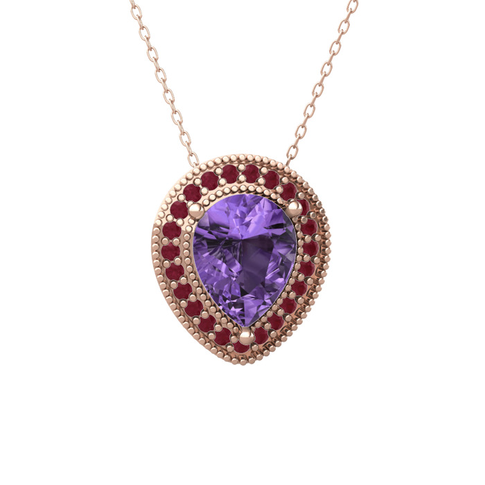 Ametist ve kök yakut 18 ayar rose altın kolye (40 cm rose altın rolo zincir)