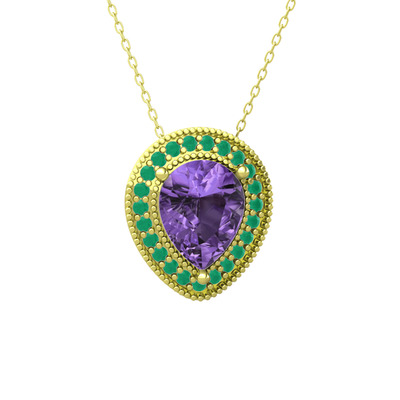 Ametist ve kök zümrüt 14 ayar altın kolye (40 cm altın rolo zincir)