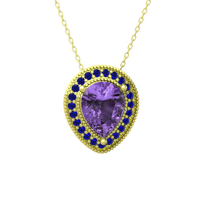Ametist ve lab safir 8 ayar altın kolye (40 cm altın rolo zincir)