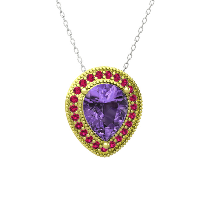 Ametist ve rodolit garnet 8 ayar altın kolye (40 cm beyaz altın rolo zincir)