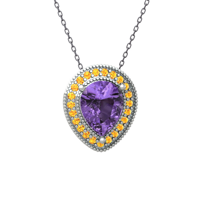 Ametist ve sitrin 18 ayar beyaz altın kolye (40 cm gümüş rolo zincir)