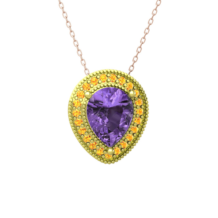 Ametist ve sitrin 925 ayar altın kaplama gümüş kolye (40 cm gümüş rolo zincir)