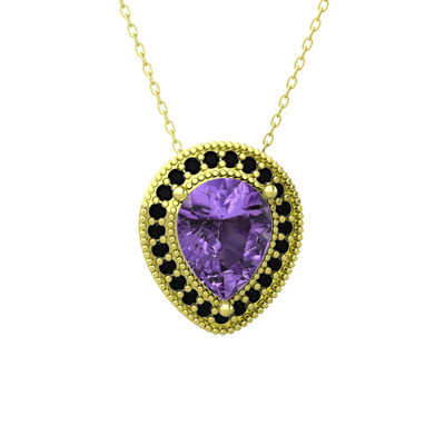 Ametist ve siyah zirkon 925 ayar altın kaplama gümüş kolye (40 cm gümüş rolo zincir)