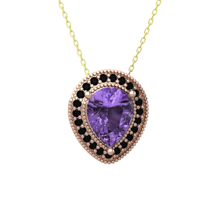 Ametist ve siyah zirkon 925 ayar rose altın kaplama gümüş kolye (40 cm altın rolo zincir)