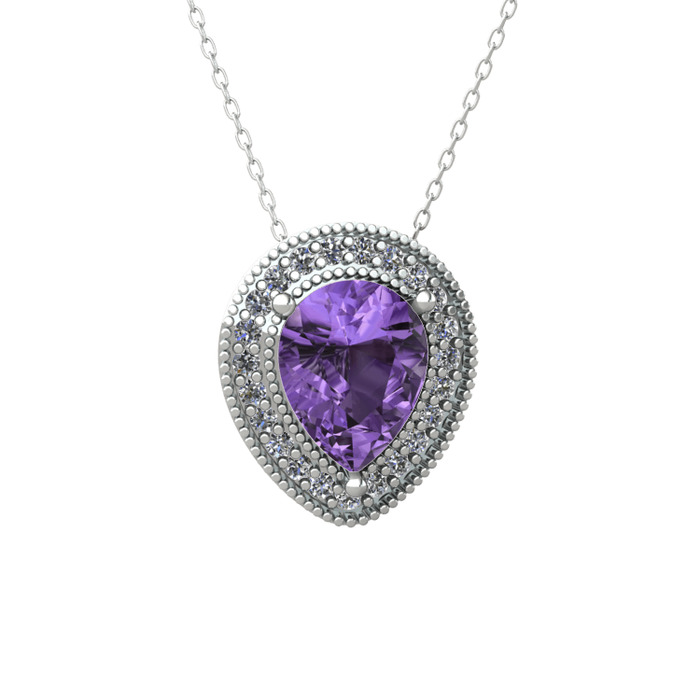 Ametist ve swarovski 925 ayar gümüş kolye (40 cm beyaz altın rolo zincir)