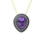 Ametist ve swarovski 925 ayar siyah rodyum kaplama gümüş kolye (40 cm altın rolo zincir)