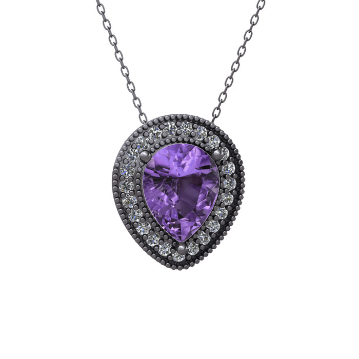 Ametist ve swarovski 925 ayar siyah rodyum kaplama gümüş kolye (40 cm gümüş rolo zincir)