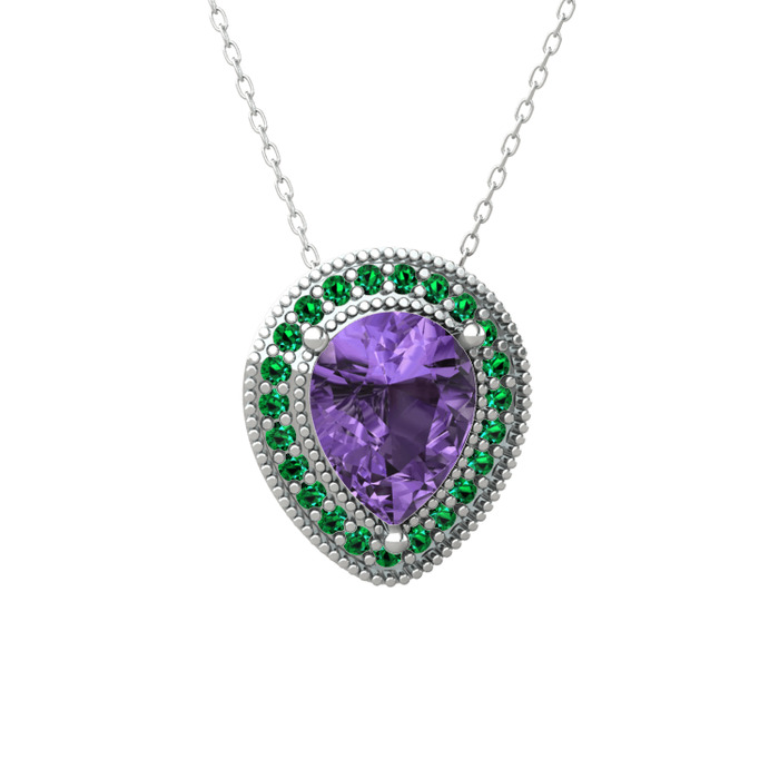 Ametist ve yeşil kuvars 925 ayar gümüş kolye (40 cm beyaz altın rolo zincir)