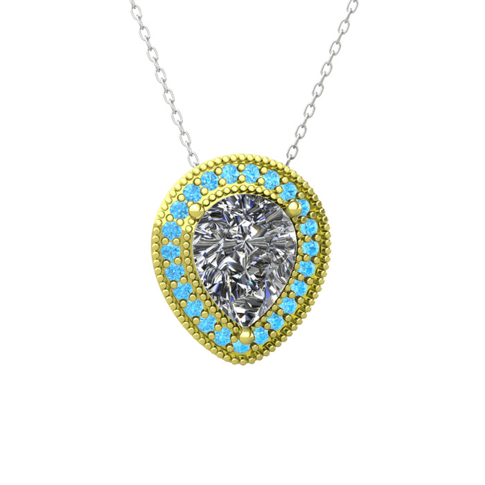 Beyaz zirkon ve akuamarin 14 ayar altın kolye (40 cm beyaz altın rolo zincir)