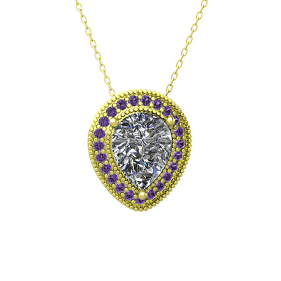 Beyaz zirkon ve ametist 14 ayar altın kolye (40 cm gümüş rolo zincir)