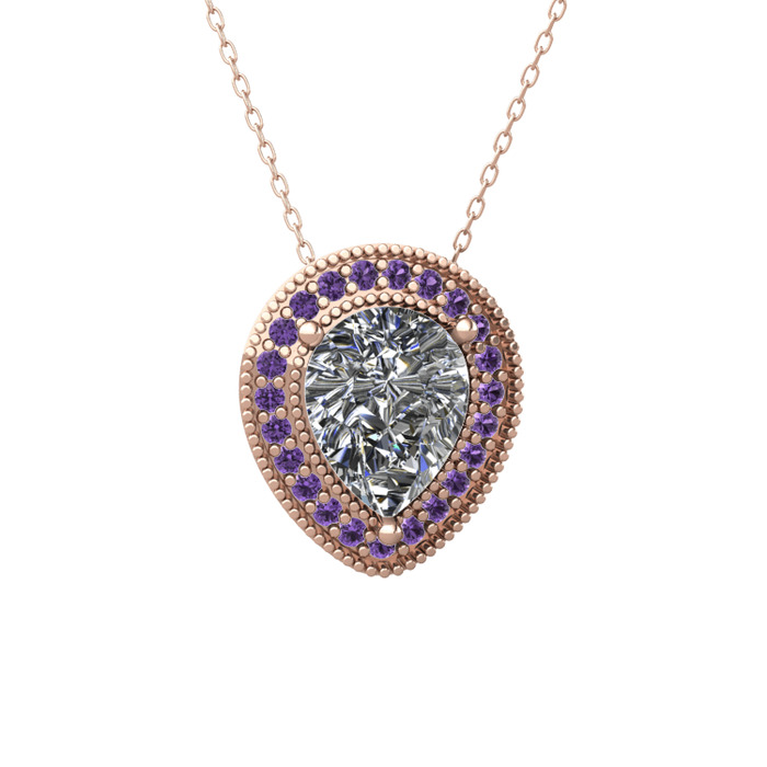Beyaz zirkon ve ametist 14 ayar rose altın kolye (40 cm rose altın rolo zincir)