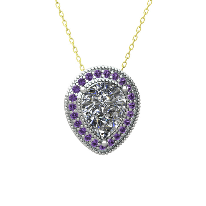 Beyaz zirkon ve ametist 8 ayar beyaz altın kolye (40 cm altın rolo zincir)