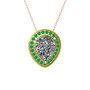 Beyaz zirkon ve kök zümrüt 925 ayar altın kaplama gümüş kolye (40 cm gümüş rolo zincir)