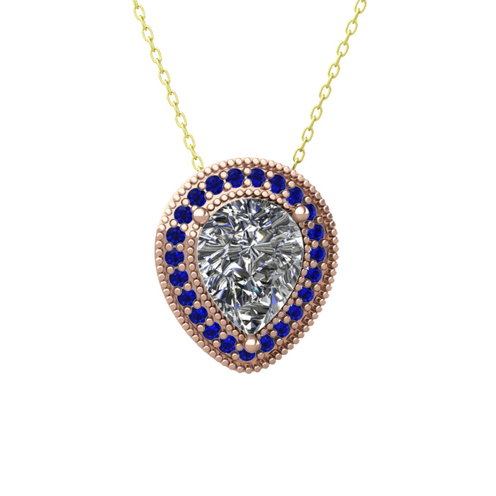 Beyaz zirkon ve lab safir 8 ayar rose altın kolye (40 cm altın rolo zincir)