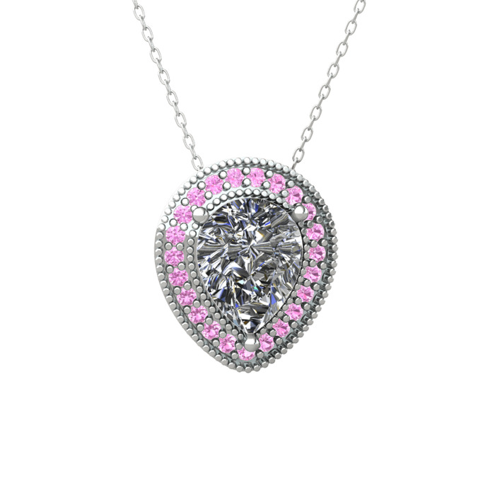 Beyaz zirkon ve pembe kuvars 925 ayar gümüş kolye (40 cm beyaz altın rolo zincir)