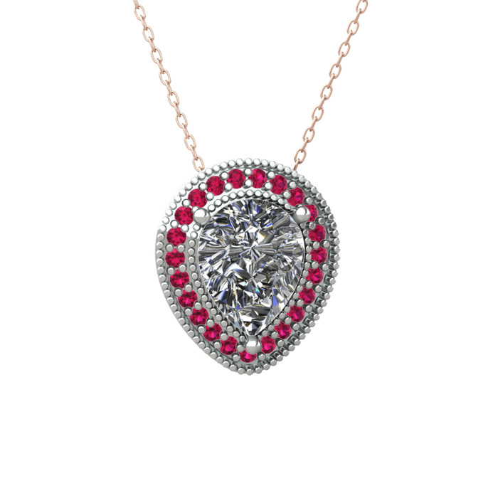 Beyaz zirkon ve rodolit garnet 18 ayar beyaz altın kolye (40 cm rose altın rolo zincir)