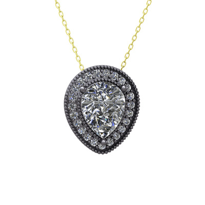 Beyaz zirkon 925 ayar siyah rodyum kaplama gümüş kolye (40 cm gümüş rolo zincir)