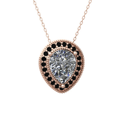 Beyaz zirkon ve siyah zirkon 14 ayar rose altın kolye (40 cm rose altın rolo zincir)