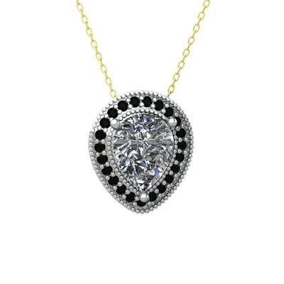 Beyaz zirkon ve siyah zirkon 18 ayar beyaz altın kolye (40 cm altın rolo zincir)