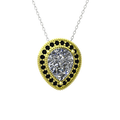 Beyaz zirkon ve siyah zirkon 925 ayar altın kaplama gümüş kolye (40 cm gümüş rolo zincir)
