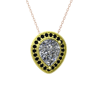 Beyaz zirkon ve siyah zirkon 925 ayar altın kaplama gümüş kolye (40 cm rose altın rolo zincir)