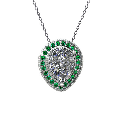Beyaz zirkon ve yeşil kuvars 14 ayar beyaz altın kolye (40 cm gümüş rolo zincir)
