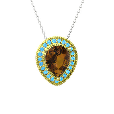 Dumanlı kuvars ve akuamarin 14 ayar altın kolye (40 cm beyaz altın rolo zincir)