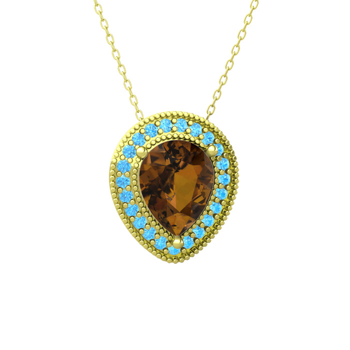 Dumanlı kuvars ve akuamarin 8 ayar altın kolye (40 cm altın rolo zincir)