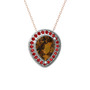 Dumanlı kuvars ve garnet 14 ayar beyaz altın kolye (40 cm rose altın rolo zincir)