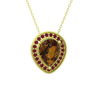Dumanlı kuvars ve kök yakut 14 ayar altın kolye (40 cm gümüş rolo zincir)