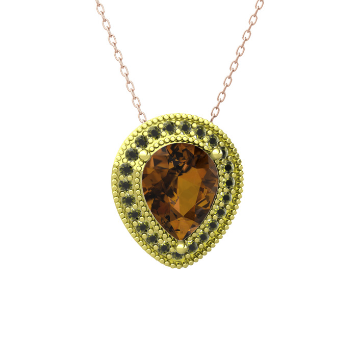 Dumanlı kuvars ve peridot 925 ayar altın kaplama gümüş kolye (40 cm gümüş rolo zincir)
