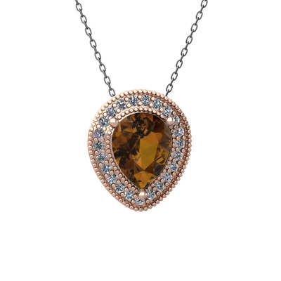 Dumanlı kuvars ve pırlanta 14 ayar rose altın kolye (0.264 karat, 40 cm gümüş rolo zincir)