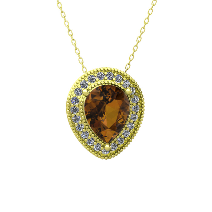 Dumanlı kuvars ve pırlanta 925 ayar altın kaplama gümüş kolye (0.264 karat, 40 cm altın rolo zincir)
